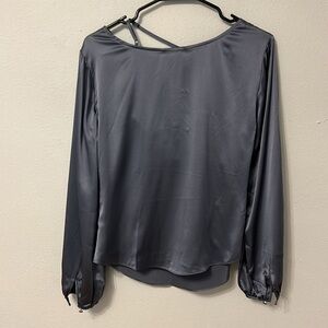 NWT Cinq A Sept Jordy Cowlneck 100% silk blouse. Blue gray women’s size small.