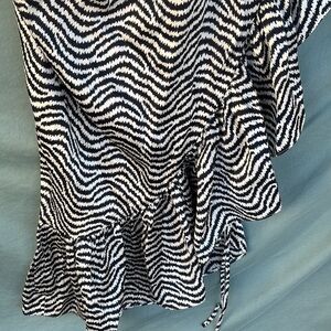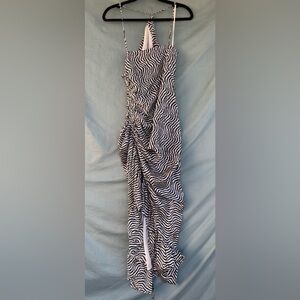 NWT Cinq A Sept Ruffled 100% Silk Midi Dress Sz 4 New Black White Asymmetric Hem