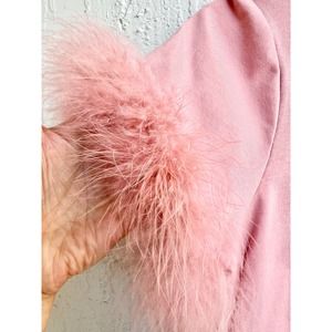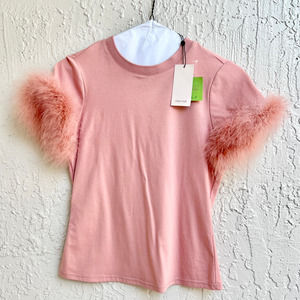 NWT Cinq A Sept Short Sleeve Zoie Feather Trimmed Crew Neck Top Pink Women's XS