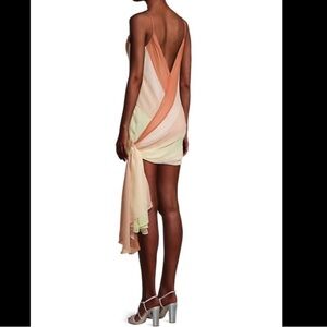 Breezy draped dress featuring a panelled colourblock design and a knot detail at side.
