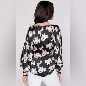 NWT Cinq à Sept Yesenia Floral Tie-Front Silk Blouse Black/ Blush Pink