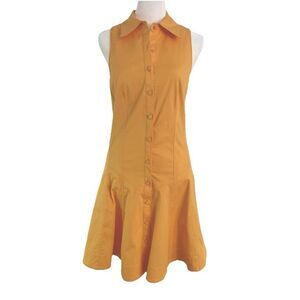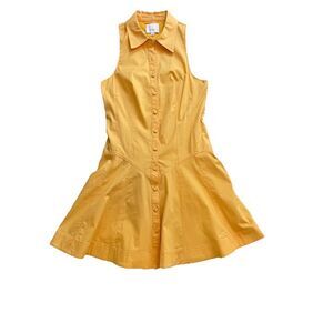 NWT Cinq a Sept 5a7 Womens Poppy Mini Button Up Shirt Dress Ginger Yellow Size 4