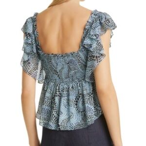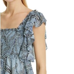 NWT Cinq a Sept Anabelis Smocked Ruffle Top in Rain Cloud Multi Sz. XS