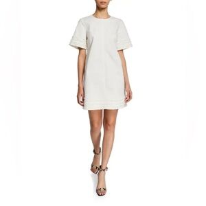 NWT Cinq a Sept Ashton Military Twill Short-Sleeve Shift Dress Ivory Size 4