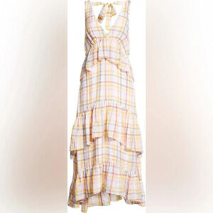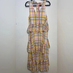 NWT Cinq a Sept Astor Plaid Gingham Midi Dress - Spring Summer Ruffled Tiered