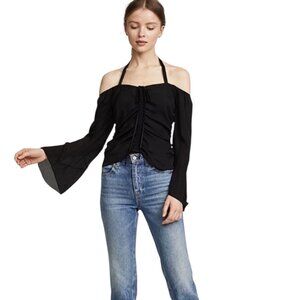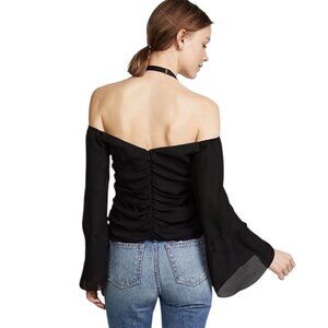 NWT Cinq a Sept Lorne Black Silk Off Shoulder Halter Top XS Reg. $365