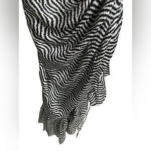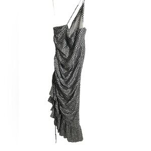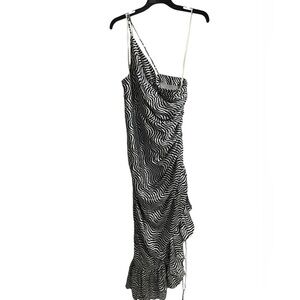 NWT Cinq a Sept Silk Christel Ruched One Shoulder White Navy Midi Dress