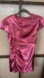 Features: light pink wild orchid color, smooth satin material, mini length, ruched side and sleeves