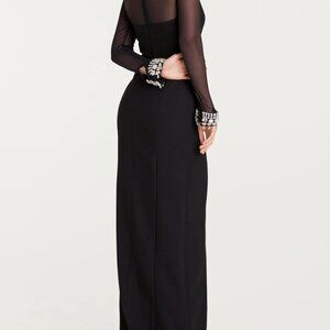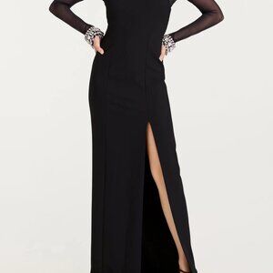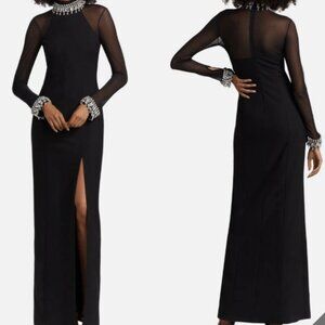 NWT Cinq a Sept Womens Loretta Crystal-Embellished Long-Sleeve Gown Black Size 6