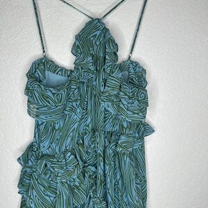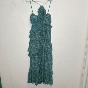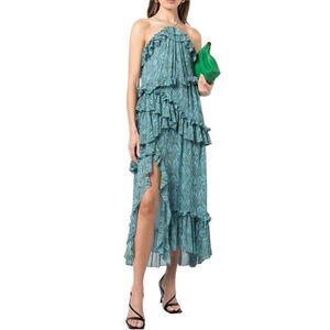 NWT Cinq A Sept Rayner Ruffle Trimmed MIDI Dress Size 8 Celeste Blue/Green