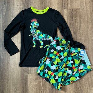 This is such a cute little PJ set for your little one. long sleeve and long pants. Dino theme with fun pattern colors. Soft and lightweight.