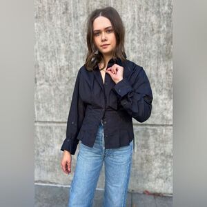 Citizens of Humanity Francis corset button up shirt in black. Taking tailored to a whole new lebel, the slightly cropped fit is a modern take on your closet staple button down.