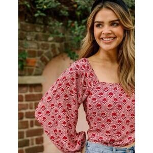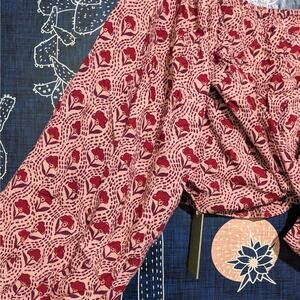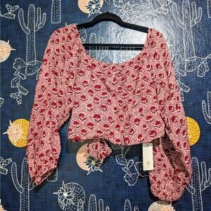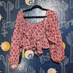 NWT Citrine Teza Collection Renee Tie Front Off Shoulder Floral Top Red Large