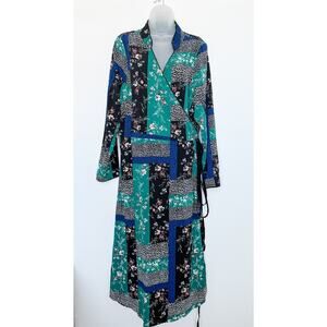 NWT City Chic Bright Patchwork Midi Wrap Dress Size 20 Mixed Media Boho Artsy