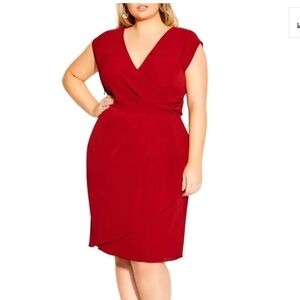 NWT City Chic Classic Wrap Dress Henna Short Sleeve Crepe Material V- Neck Size Medium/18 (city chic sizing)
