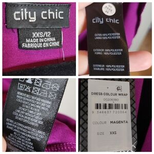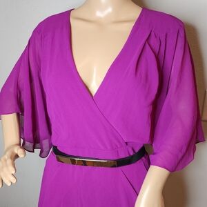 NWT City Chic Magenta Belted Faux Wrap Drape Belted Flutter Sleeve Dress 12