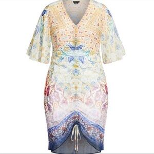 NWT City Chic Mirror Zambia Printed Shirred Dress