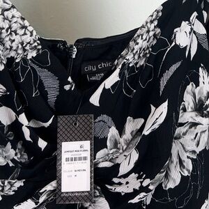 NWT City Chic Mod Floral Off Shoulder Belted jumpsuit Black/White