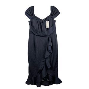 NWT City Chic Navy Blue Hypnotize Off the Shoulder Satin Maxi Dress US 12W