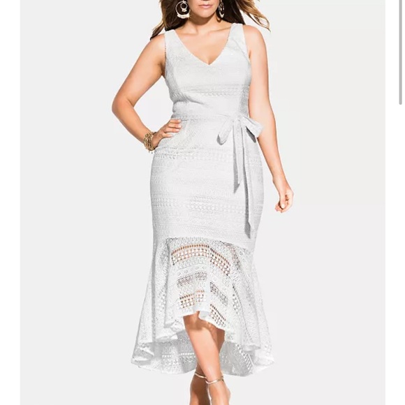 NWT City Chic Sunset Lace Mermaid Maxi Dress in White Size 14