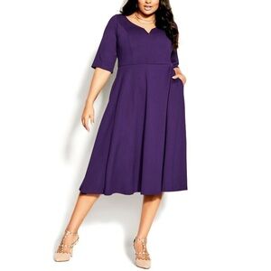 NWT City Chic Women's Plus Size Cute Girl Elbow Sleeve Midi Dress Petunia