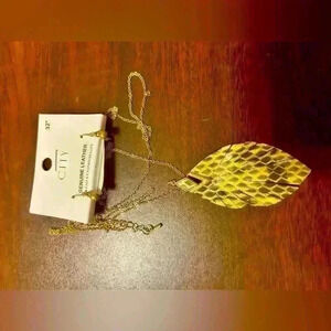 NWT City Genuine Leather Animal Print Pendant and Earring Set 32” length.