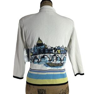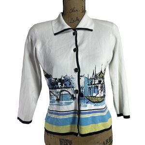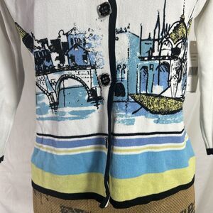 NWT City Girl Sweater SMALL PET Cardigan Button Venice Scene Stretch Knit