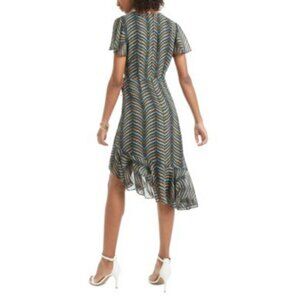 NWT City Studio Size 15 Multicolor Chevron Wrap Dress Ruffle Hem V-Neck