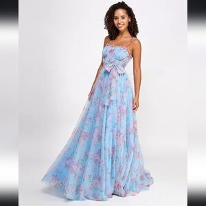 NWT City Studios Juniors Floral Print Bustier Gown in Sky Rose Size 15/16