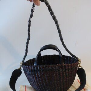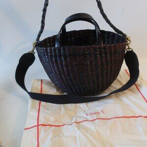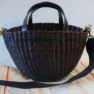 NWT Clare V. Los Angeles Apolline Dark Brown Black Handwoven Dyed Straw Handbag