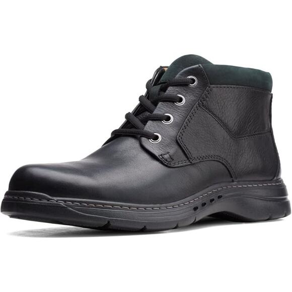 Step out in style and comfort with these New With Tags Clarks Un Brawley Pace Oxford shoes. These shoes feature a sleek black leather upper, perfect for both casual and more dressed-up occasions. The wide fit ensures a comfortable experience, making them ideal for all-day wear.