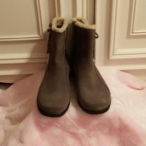 Very comfortable cute winter ankle boots. Go great with any outfit. Fashionable winter boot. Never worn. Selling bc they are to big on me.
