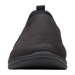 Clarks Breeze Bali women’s loafers in black synthetic. Lightweight and flexible with a cushioned footbed for all-day comfort. Easy slip-on design—perfect for casual wear, walking, travel, and everyday outfits. Size 7M