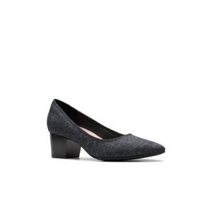 Clarks Women’s Ellanie Hope Pump in charcoal interest textile. Elegant, lightweight pump featuring a rounded toe, cushioned footbed, and flexible sole for all-day comfort. Size 8.5 Wide for a roomier fit. Great for work or dressy occasions.
