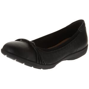 NWT Clarks Women's Meadow Rae Ballet Flat, Black Leather, 6