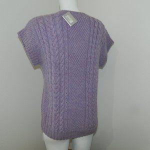 NWT Classic Alpaca Women Lilac Melang Short Sleeve Cable Sweater sz M