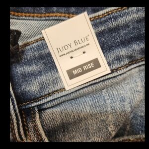 Elevate your style with these classic blue denim jeans. Perfect for any occasion, these jeans offer comfort and a timeless look.NWT Judy Blue size 5/27 boot cut mid rise button fly jeans.