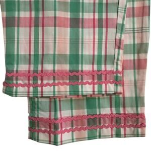 Mint & pink plaid with pink Ric-Rac trim at the hems, Pull-on style, Lightweight 100% Cotton, Elastic waist, Straight leg, MSRP $59.