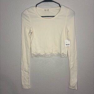 NWT Classic Twist Cream Lace Trim Top