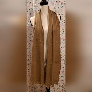 NWT Claudia Nicole Tan Cashmere Neutral Boho Casual Knit Scarf Wrap w/ Fringe