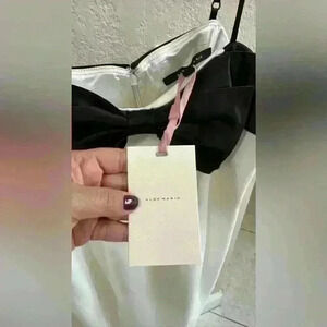NWT Alex Marie Cleo Two Tone Color Block Off-The-Shoulder Bow Satin Mini Dress - Size 10 - brand new with tags.