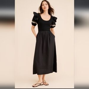 NWT Cleobella Black Puff Sleeve Midi Dress White Embroidery