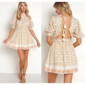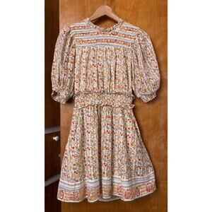 NWT Cleobella Dallas Mini Floral Block Print Dress Puff Sleeve Size M $198 Boho