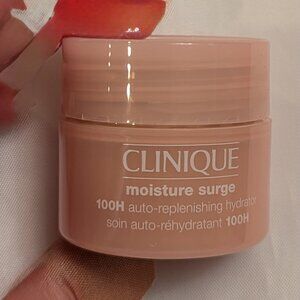 This listing is for a NWT/NIB Clinique moisturizer called "Moisture Surge 100H Auto-Replenishing Hydrator". Clinique describes this moisturizer as a "refreshing, oil-free, gel-based moisturizer that penetrates deep and lasts 100 hours. It locks in moisture for an endlessly plump, dewy glow."