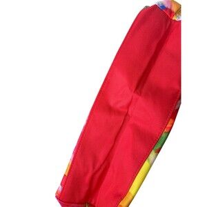 Features: double handles, lined, allover floral print with ladybug, lightweight, open (no closure)