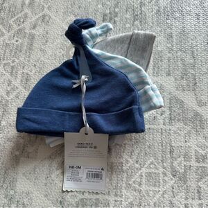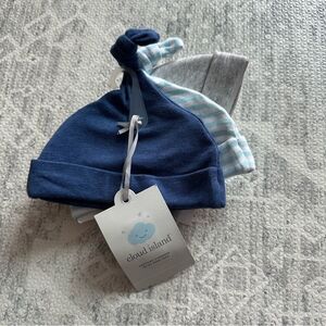 NWT Cloud Island Boys Blue Tones Knotted Baby Beenie Hat - 3 pack NB-0M Infant