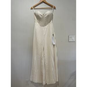 NWT Club L London Lorelai Corset Plisse Wide-Leg Jumpsuit Cream Women's Size 6