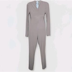 NWT Club L London My World Maternity Shoot Jumpsuit Taupe V Neck Long US 4 UK 8