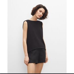 New with tag Black sculptural Top. Sleeveless. Boat neckline. Thick fabric.