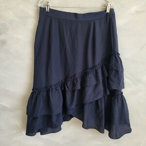 NWT Club Monaco Blue Hespe Midi Length Ruffle Tiered Skirt Sz 12